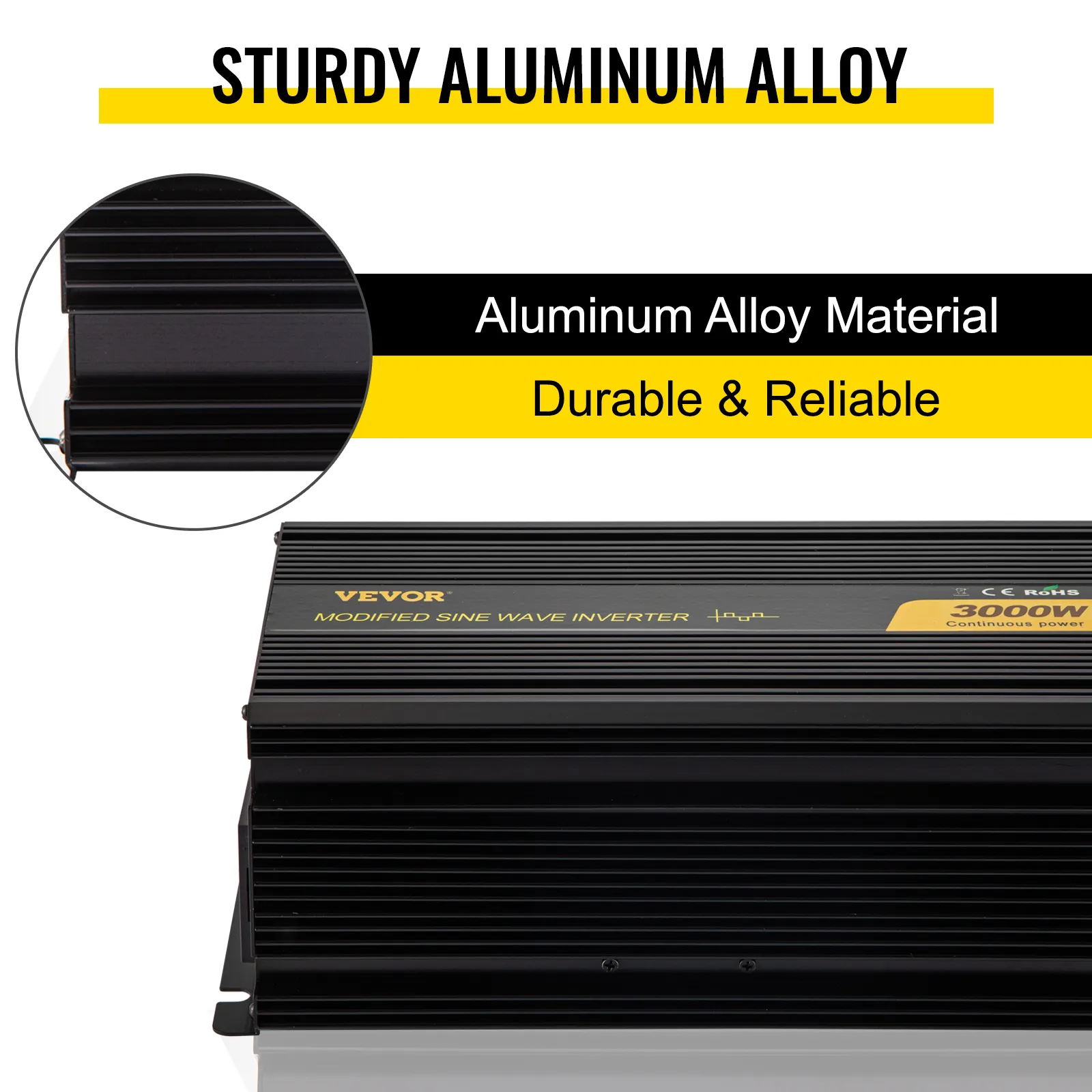 • Aluminum Alloy Shell & LCD: 3000W modified sine wave inverter adopts an aluminum alloy shell to resist heat, cold, and corrosion, which is not easy to rust. LCD screen and LED indicators are convenient for users to master the power inverter working promptly.