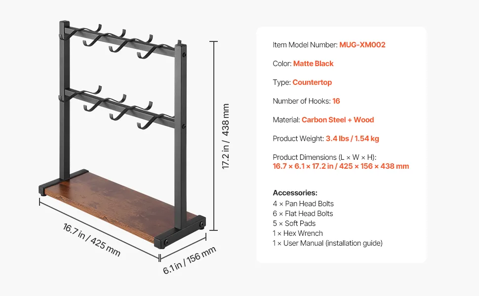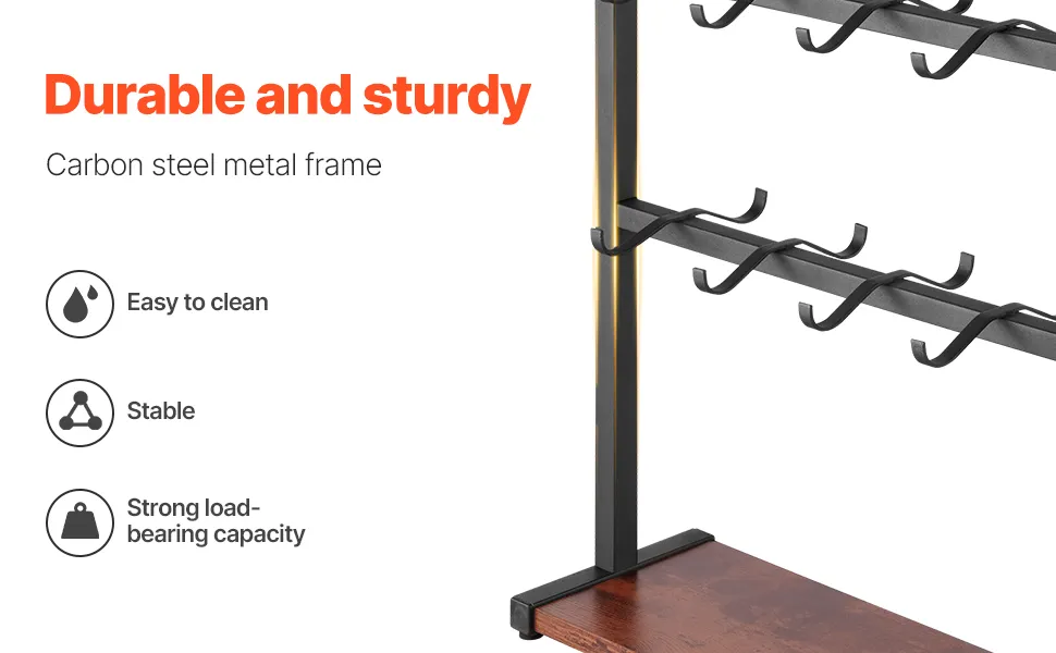 Durable & Stable: Made from quality carbon steel, the mug rack offers strong load-bearing capacity, is resistant to deformation, and is both sturdy and durable. The metal surface is smooth to prevent scratches
