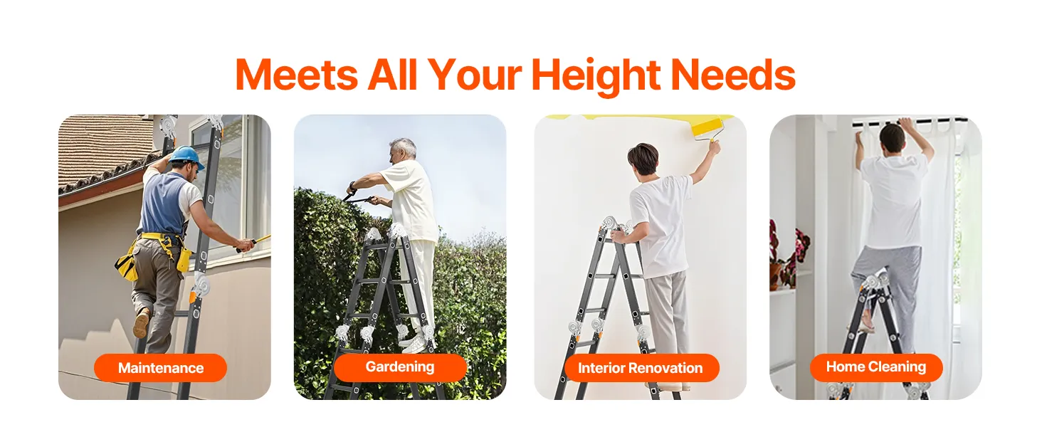 This ladder can be easily transformed into A-frame, M-frame, ladder, L-frame, platform, folded, and straight shapes, providing unmatched versatility for a wide range of tasks.