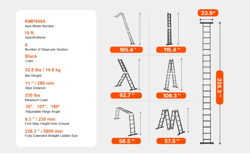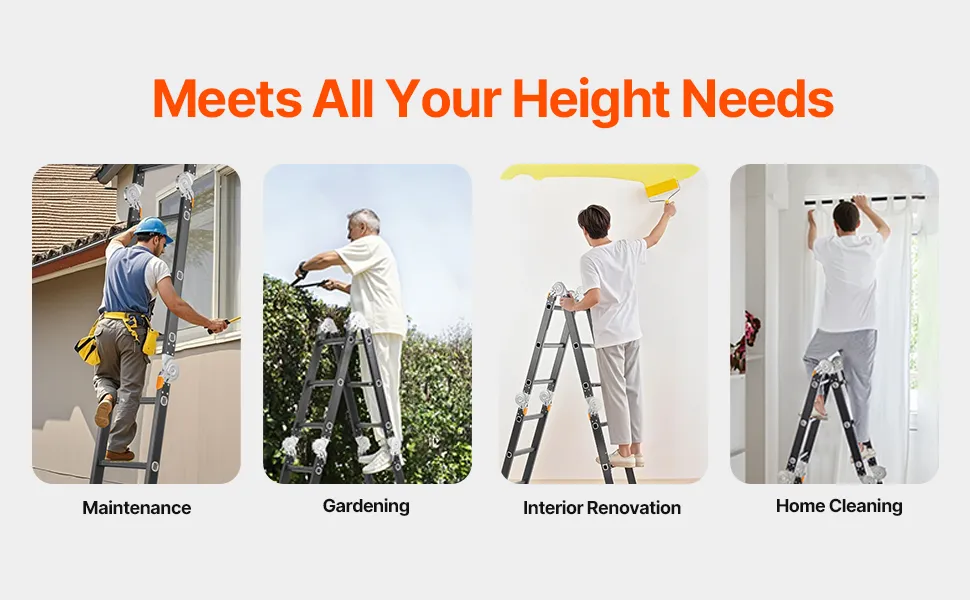 This ladder can be easily transformed into A-frame, M-frame, ladder, L-frame, platform, folded, and straight shapes, providing unmatched versatility for a wide range of tasks.