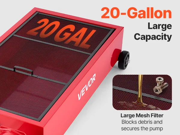 Durable Steel Build: The reinforced carbon steel body handles heat and heavy use with ease. A large mesh filter of the portable oil drain pan blocks debris, securing the pump and helping extend service life