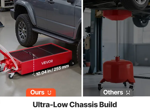 Low-Profile Design: The ultra-low design of the rolling oil drain pan easily fits under low cars, motorcycles, and ATVs without using a jack. You can start draining quickly, even in tight spaces