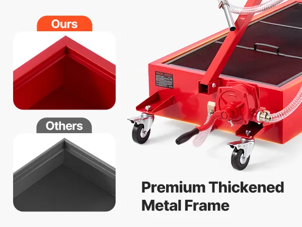 Efficient Oil Draining: This low profile oil drain pan comes with a hand pump, no power needed! Its solid build makes it reliable in outdoor or no-electricity settings like farms or service trucks, giving you full control every time