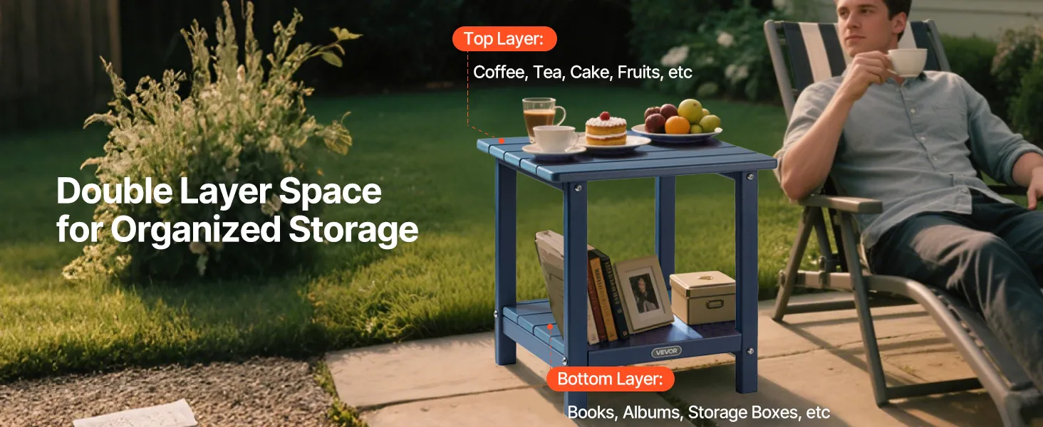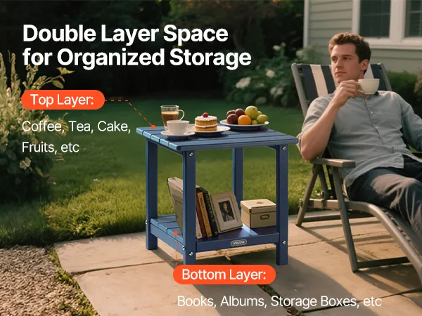 The dual-layer design makes the patio end table easy to organize your drinks, snacks, or any other essentials. Enjoy a neat tabletop while having extra storage space below.