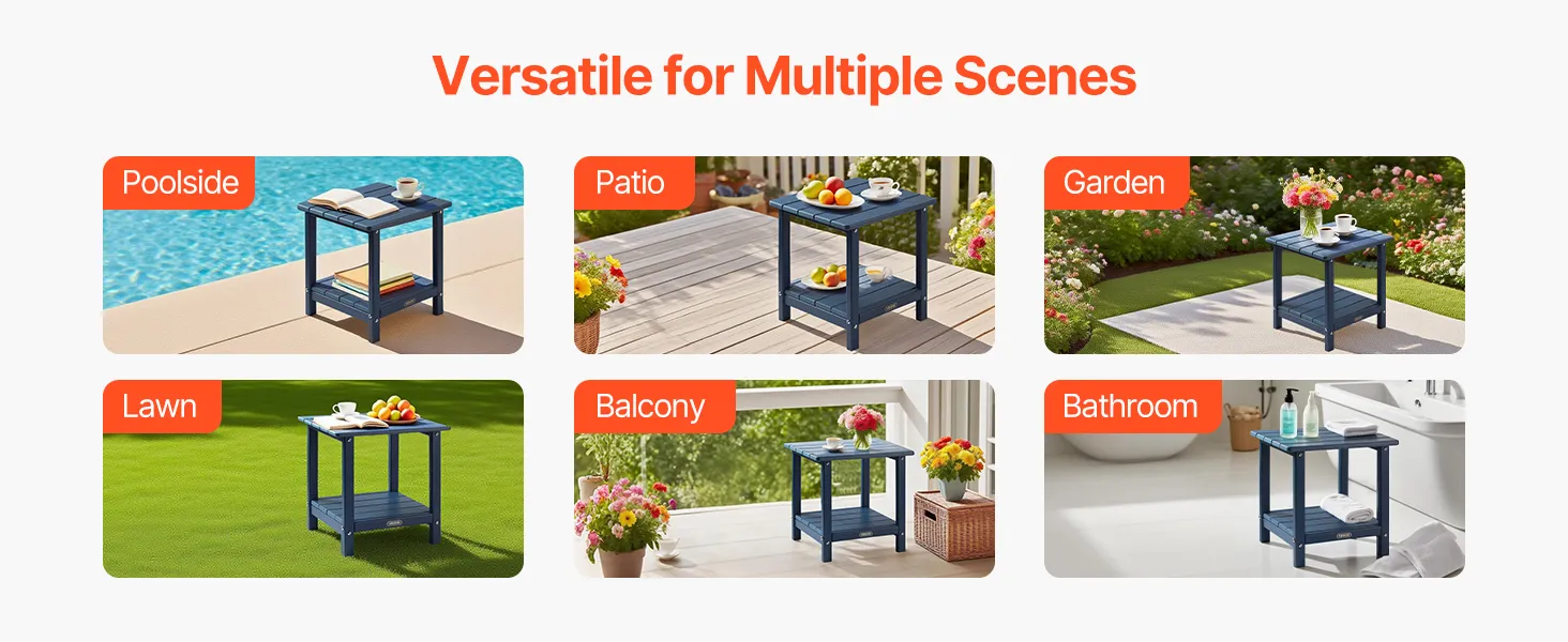 Versatile for Any Setting: Whether by the pool, at a picnic, or as a portable workstation, this HDPE side table fits all occasions. It's ideal for outdoor and indoor spaces, offering both style and function for every event