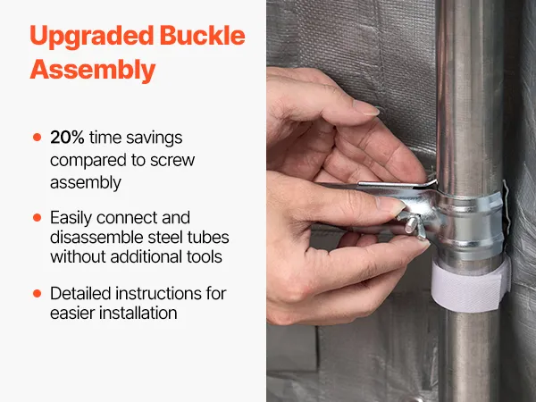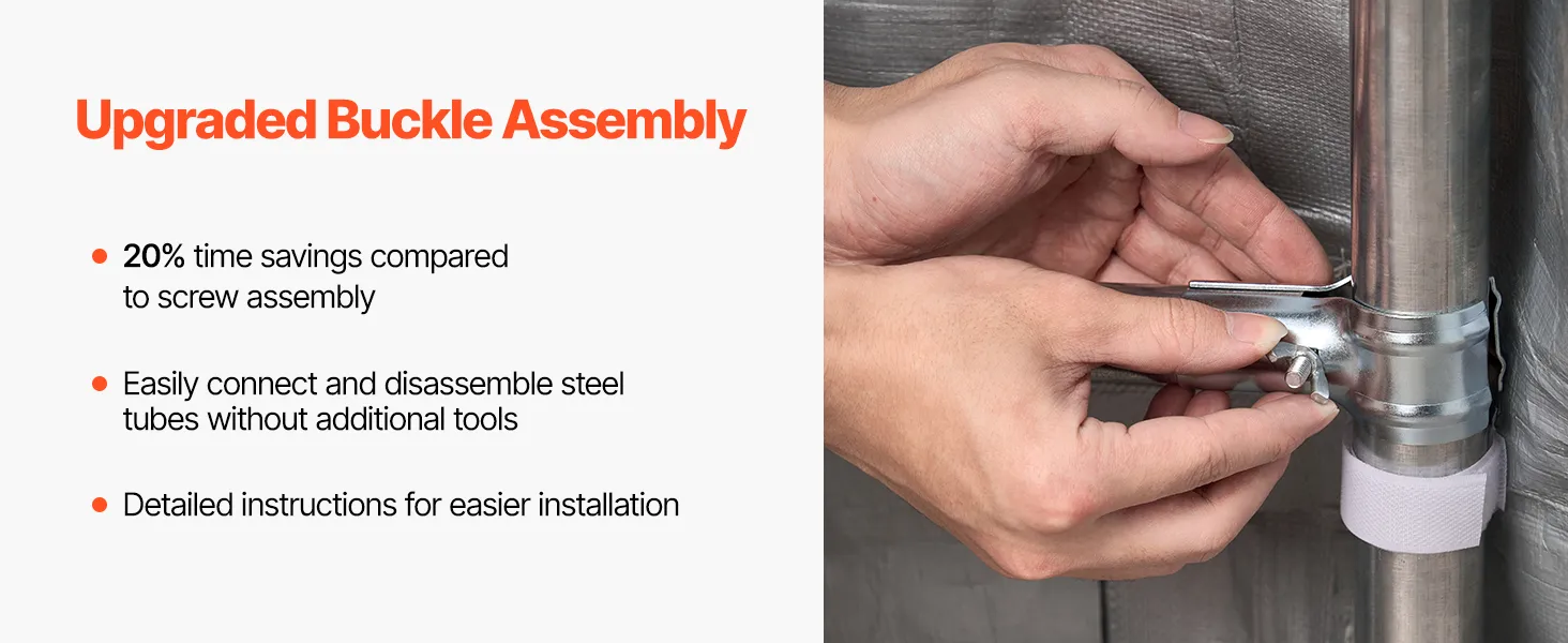 Buckled Easy Assembly: This outdoor portable storage shelter can be quickly and easily assembled using buckle connectors with T-joints and cross joints, requiring no tools. With detailed assembly instructions, it ensures a fast and straightforward one-on-one connection.