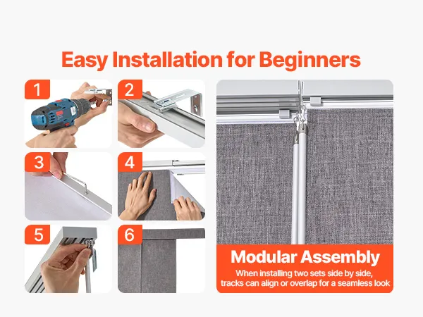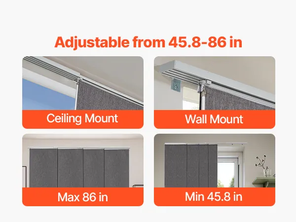 Flexible Installation: Adjustable track spans 45.8-86 in / 116-218 cm, suitable for ceiling or wall mounting. Easily trim the fabric panels for an ideal fit. When installing multiple sets side by side, the tracks align seamlessly with minimal gaps