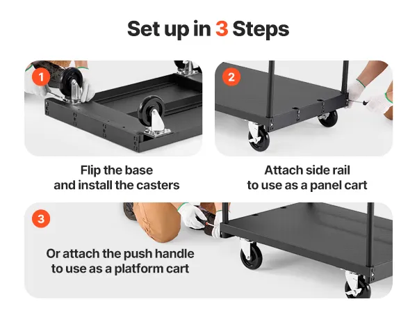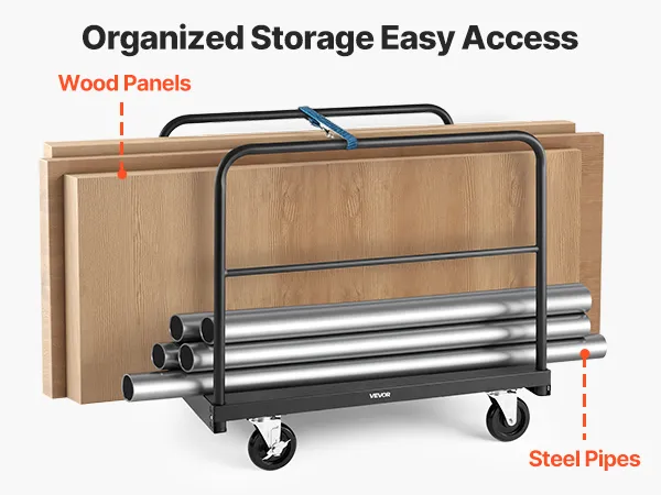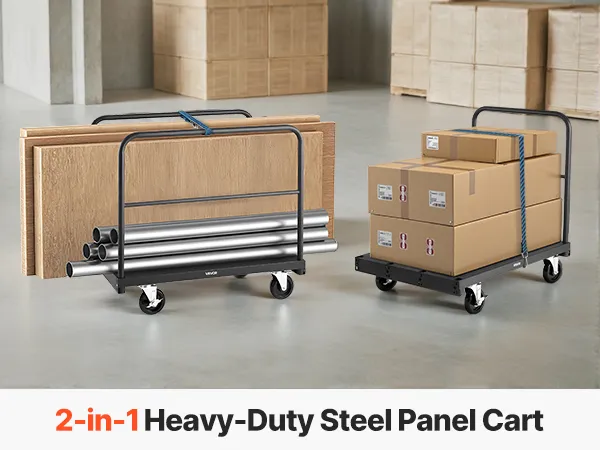 This versatile panel cart comes with a removable handle, so you can switch between dolly and flat cart. It holds up to 1800 lbs, saving effort and boosting work efficiency.