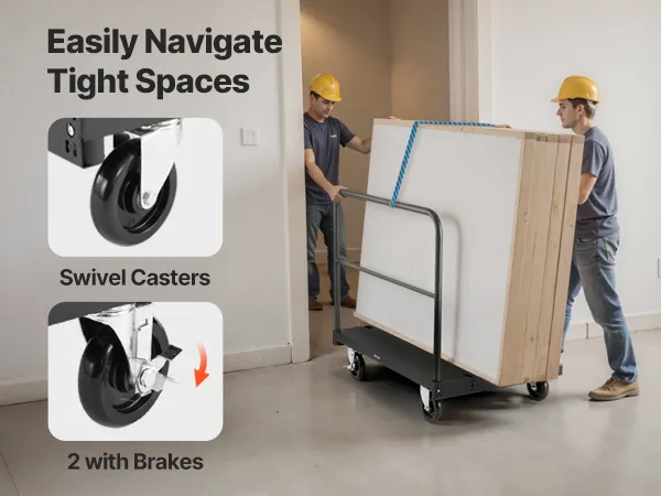 Smooth 360° Movement: The panel truck cart rolls on four 5 in PP swivel casters, two with brakes. They rotate flexibly, resist wear, and move quietly, so you can glide across floors or tight spaces and stop securely when needed
