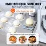 18pcs Equal: This electric dough divider can divide a large dough into 18 equal portions. Each one can range from 60 to 280 grams (2.11 to 9.88 oz). It features fast, non-stick, efficient dough dividing, avoiding the problem of unequal size caused by manual segmentation.