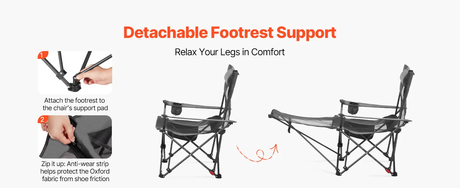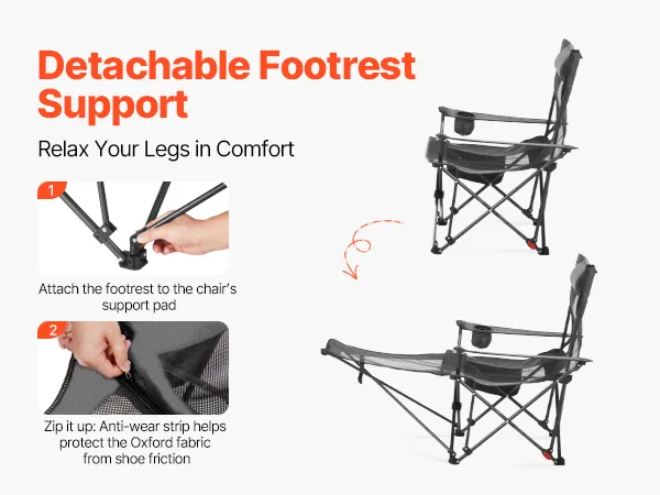 Relax your legs with a detachable footrest that zips securely onto the outdoor reclining chair's base. Designed with anti-scuff strips to reduce fabric wear from shoes, it's ideal for reading, napping, or just kicking back.