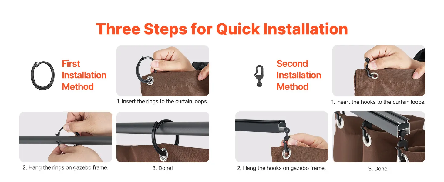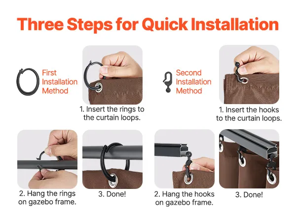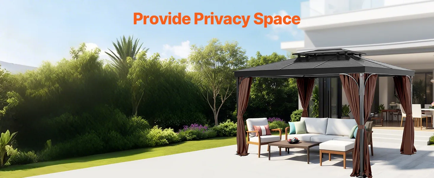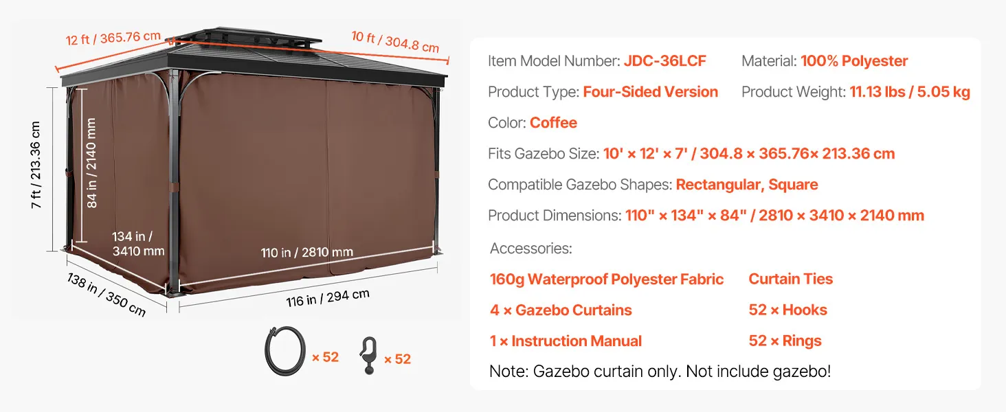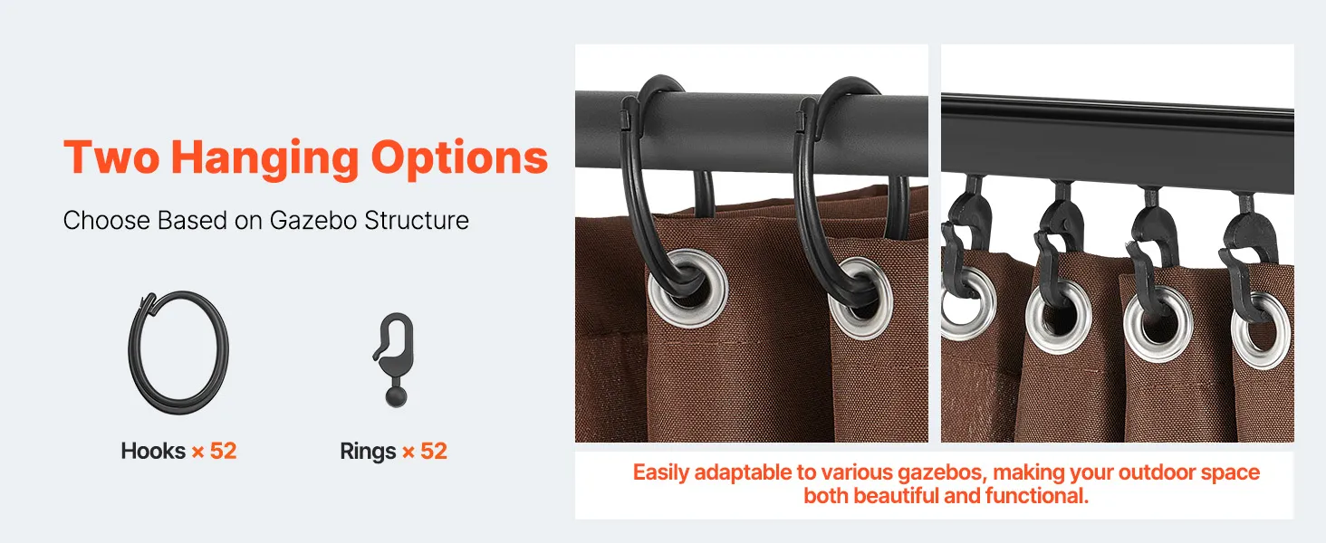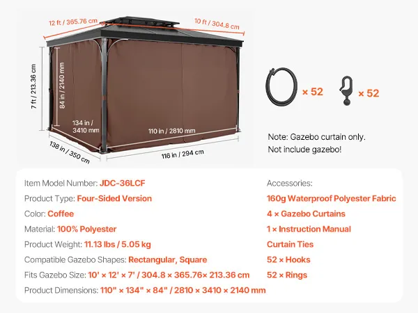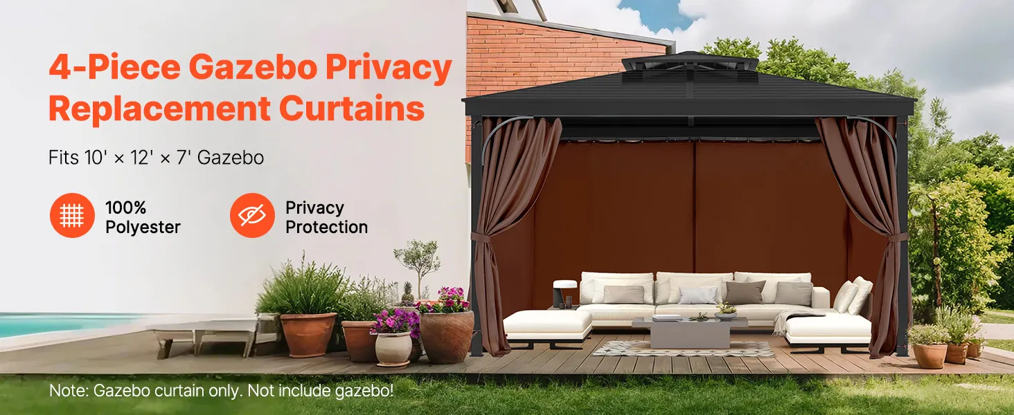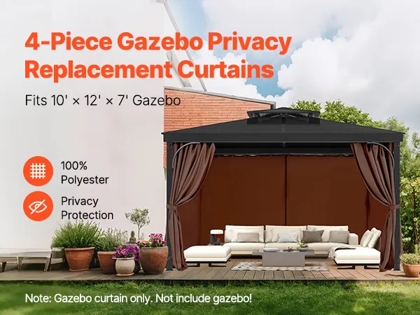 Compatible Size: This gazebo privacy replacement curtain is designed for 10' x 12' x 7' gazebos, made from 100% polyester for outstanding durability and sun protection. The double-sided zipper allows for easy adjustments from both inside and outside, making installation quick and creating a comfortable, private outdoor space.