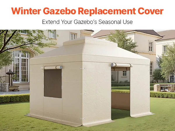 Fits 10x12 ft Gazebos: This winter gazebo cover is designed for 10x12 ft double tiered top gazebos (gazebo not included). This winter gazebo replacement cover features eaves along all four sides of the roof, adapting to different heights and slopes for a secure, tailored fit. It offers full coverage to keep your gazebo protected.