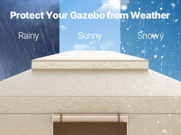 Our outdoor gazebo cover with double-sided PE coating resists water, sun, and snow. It protects your gazebo through sunny, rainy, and snowy seasons without fading or wearing out.