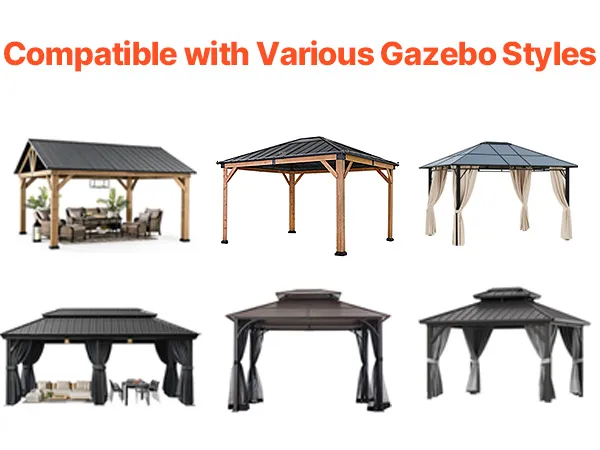 Widened Base for Extra Stability: The outdoor gazebo cover comes with 9.84 in / 25 cm extended floor skirt with metal grommets, allowing you to place weights or secure ground stakes to hold the cover firmly in place. Inner tie-down straps fasten around the gazebo posts to prevent lifting or tearing in strong winds.