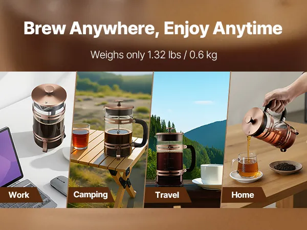 Compact and portable, this coffee maker French press turns any space into your personal drink corner—from your home office or study to a cozy campsite. Enjoy café-quality coffee, anywhere you are.