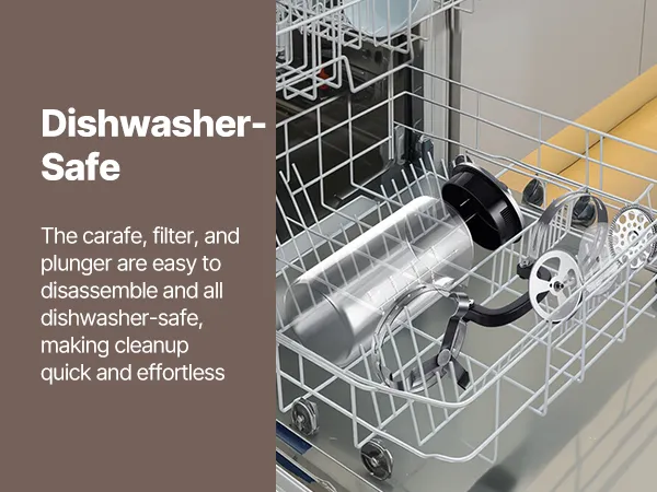 The detachable design allows for thorough cleaning—just toss it in the dishwasher. Every part, from the glass carafe to the filter, is easy to disassemble and leaves no coffee or oils behind.
