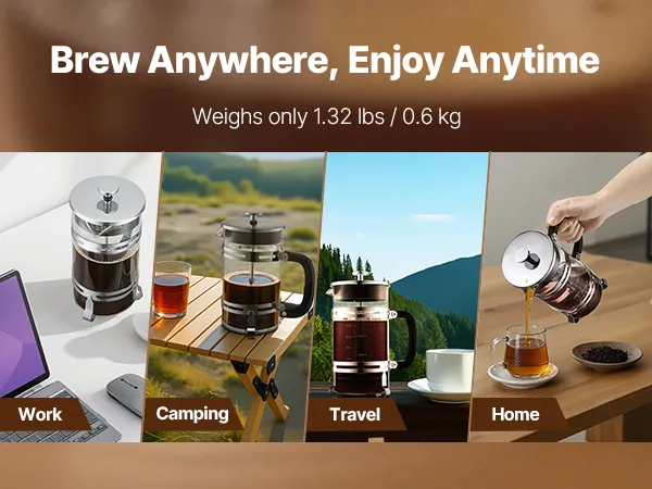 Compact and portable, this coffee maker French press turns any space into your personal drink corner—from your home office or study to a cozy campsite. Enjoy café-quality coffee, anywhere you are.