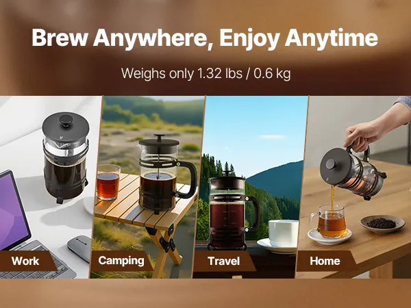 Compact and portable, this coffee maker French press turns any space into your personal drink corner—from your home office or study to a cozy campsite. Enjoy café-quality coffee, anywhere you are.