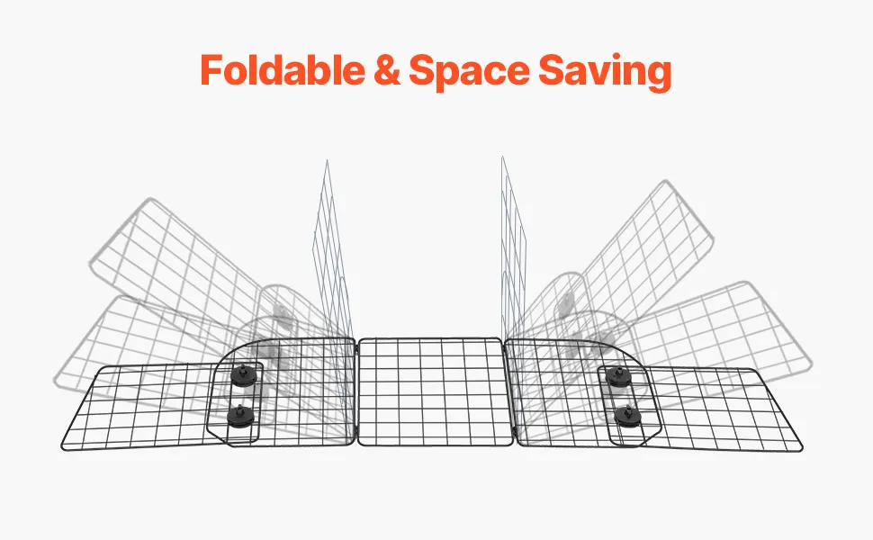 Foldable Design: The foldable design of this vehicle pet barrier allows for easy storage in compact spaces without taking up too much room. It ensures hassle-free installation and storage.