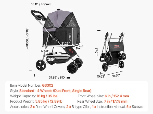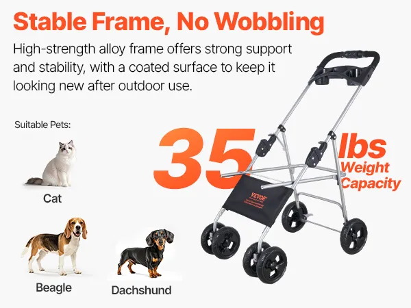 Sturdy and Durable Design: Built to hold up to 35lbs (16kg), this cat stroller is ideal for small dogs, large cats, or multiple pets. The rust-resistant alloy frame provides lasting stability and reliability, ideal for families with multiple pets or on-the-go adventures.