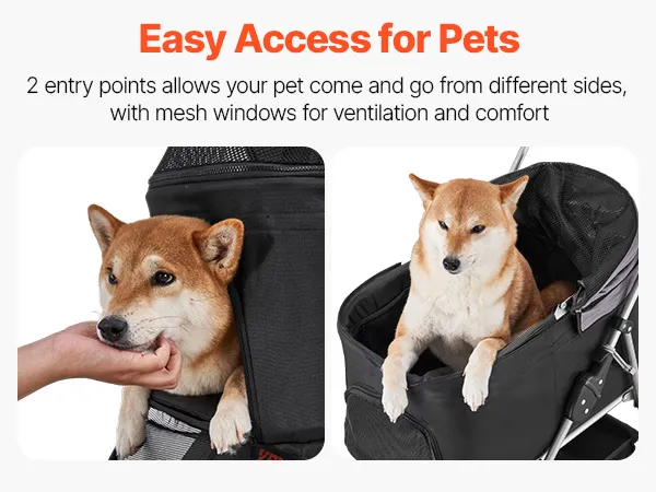 Experience ultimate convenience with this pet stroller! Made from 600D Oxford fabric, it supports up to 35lbs and features 3 entrances with breathable mesh windows. Fold it in seconds, store it compactly, and enjoy smooth rides on flexible wheels. Ideal for aging, injured, or multi-pet families.