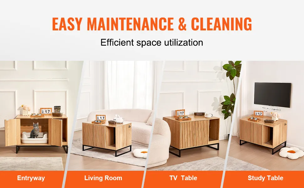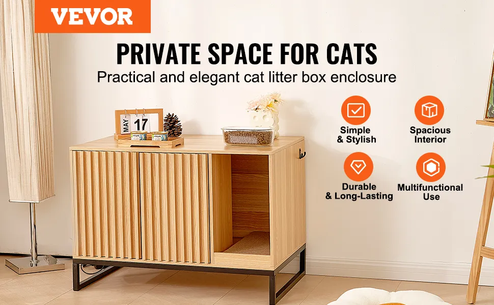 A Private Haven for Your Cat: Give your cat a private space while elevating your home's style with VEVOR cat box enclosure furniture. Its elegant design blends with your home decor, keeping your space tidy and organized, all while giving your cat a cozy retreat, seamlessly hiding your cat's litter box while reducing unpleasant odors.