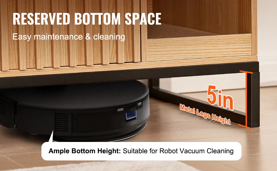 The bottom of the spacious litter box furniture hidden has a 5-inch clearance, specially designed to accommodate robotic vacuum cleaners, making it easy to clean the floor underneath. Keep your home neat without worrying about cleaning around the litter box.