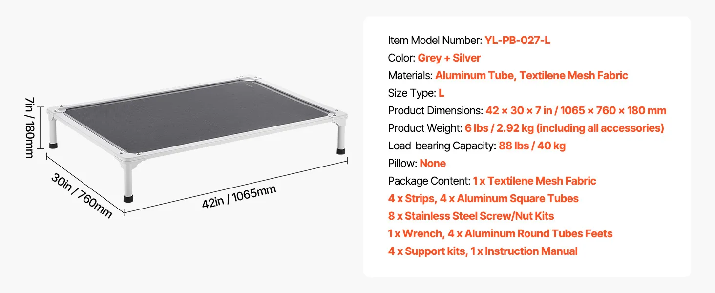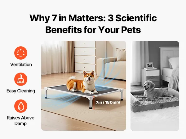 Tool-Free Quick Assembly: Comes with clear assembly instructions, allowing you to set it up in just 10 minutes. New pet owners can easily assemble it too. The 7 in / 180 mm elevated height keeps your pet off the ground, isolating them from moisture, dust, and cold temperatures. It provides cooling airflow in the summer and can be paired with a blanket in winter for warmth