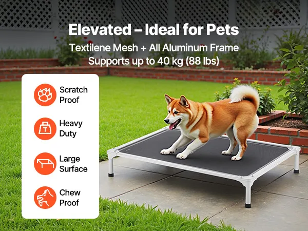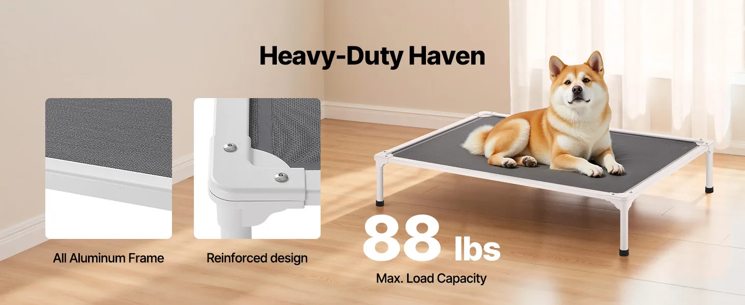 The sturdy aluminum tubes and dual central bars distribute weight evenly, making this bed ideal for large dogs (20-40 kg, like Bulldogs) and homes with 2-3 small dogs (up to 40 kg total). Its stable, wobble-free design ensures a secure and comfortable resting experience.
