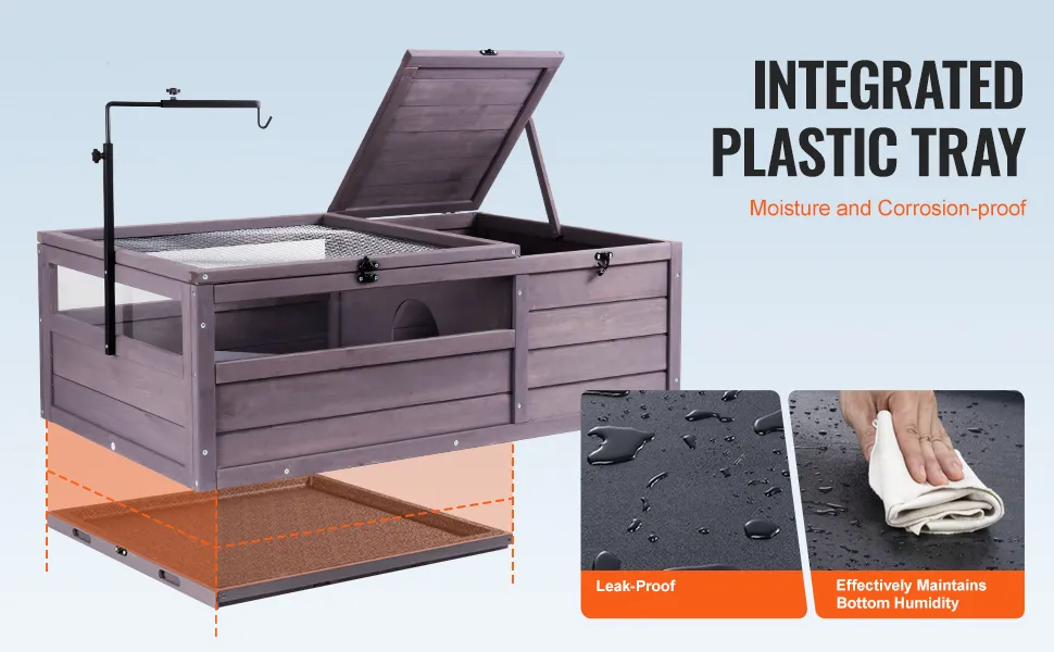 Easy-Clean Plastic Tray: The fully covered plastic tray prevents it from damaging the wood, extending the enclosure's lifespan. Its easy-to-clean surface requires a quick wipe with a damp cloth, keeping the interior clean and promoting your pet's well-being.