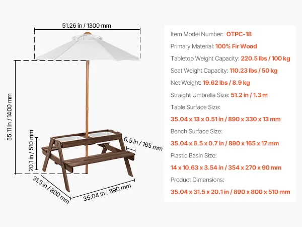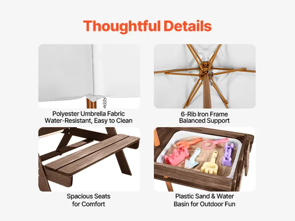 Versatile Use: The tabletop features a removable design, allowing flexible adjustments to switch between a picnic table, sand table, or water table as needed. Whether enjoying a meal outdoors or engaging in creative sand and water play, this patio dining furniture is designed to meet a variety of activities, making every experience fun and interactive
