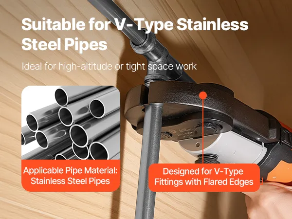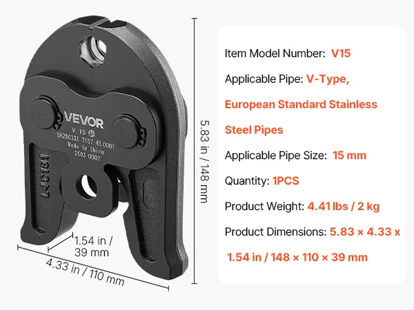 • Applicable Piping: The VEVOR 15mm pressing jaw is designed for V-type, European standard stainless steel pipes. And the V-type fittings need have flared edges to ensure proper, secure and tighter pressing and connection