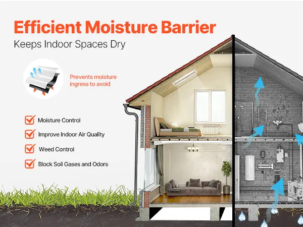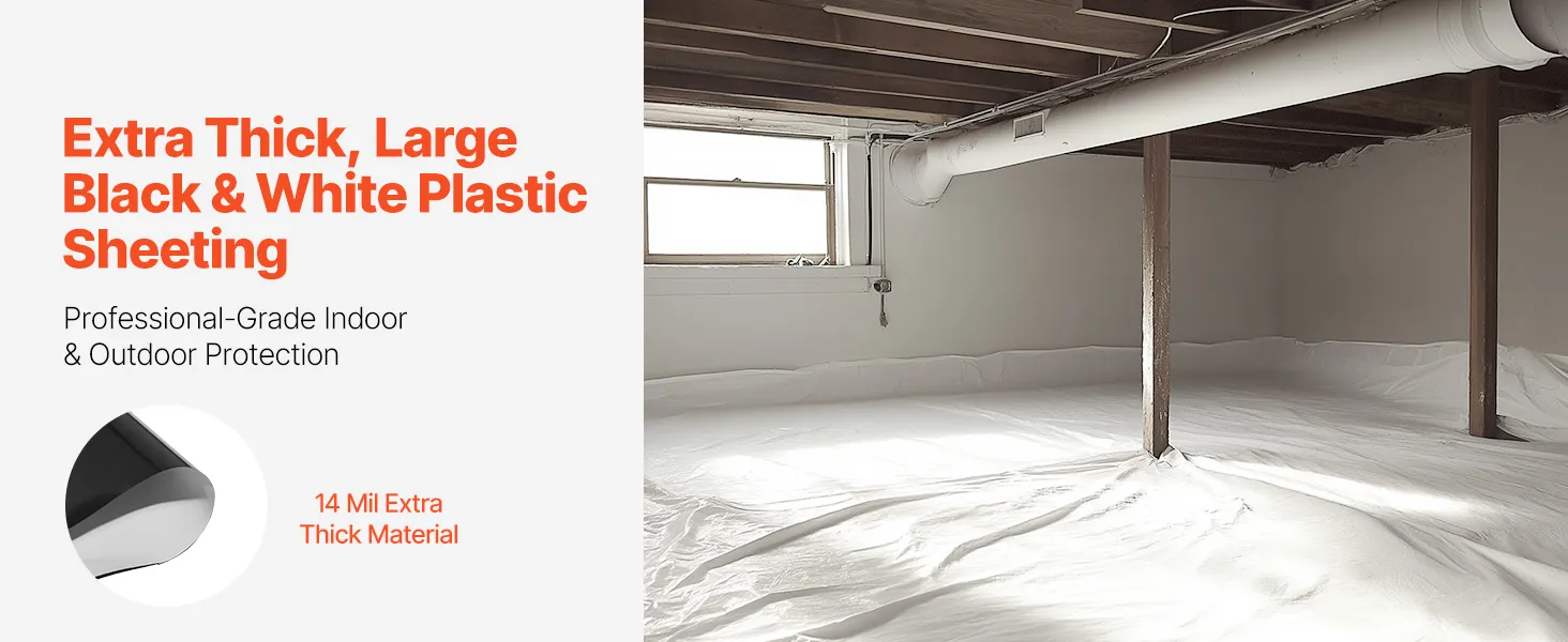 Efficient Protection: The dual-sided black and white design offers excellent reflectivity on the white surface and superior light-blocking on the black side. This double-layer, anti-seep barrier is great as a crawl space moisture barrier to minimize vapor penetration.