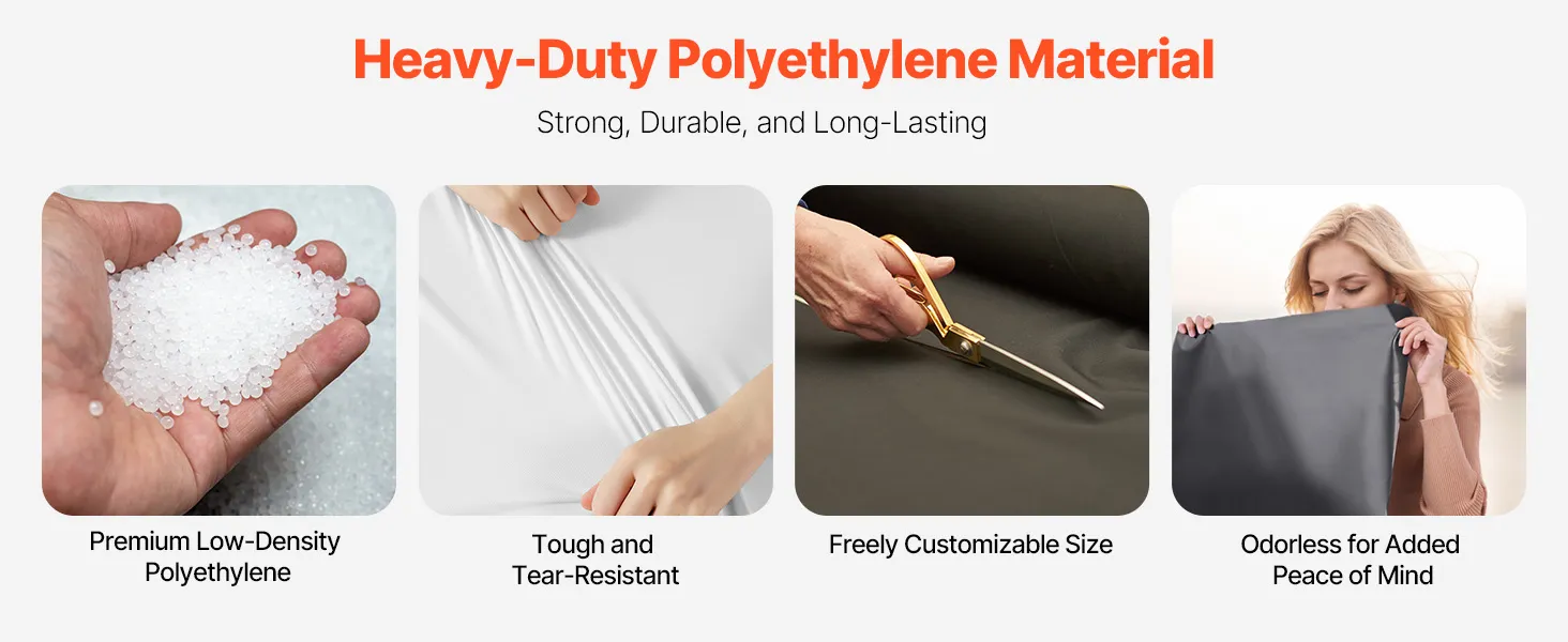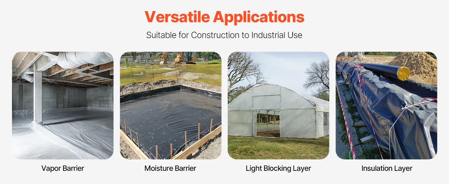 Versatile Applications: Ideal for barrier protection, thermal insulation, and seepage resistance, and light-blocking entertainment setups. This heavy duty plastic sheeting is suitable for both industrial and construction environments.