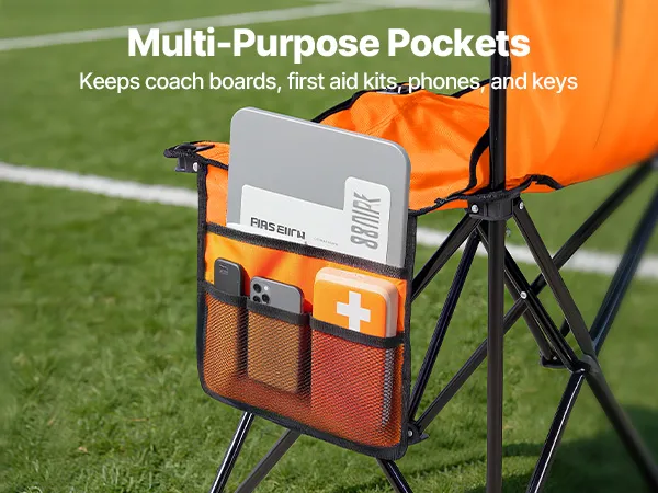User-Friendly Design: Side pockets are provided on both sides of the soccer bench, ideal for storing items such as a coach board, first aid kit, phone, and keys, offering thoughtful storage space