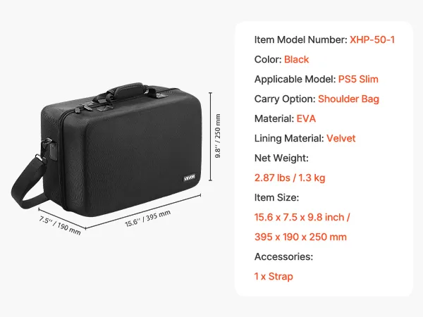 VEVOR PS5 Carrying Case, Travel Bag for Playstation 5 Slim Shockproof EVA, Soft Interior Lining & Padded Dividers for Extra Protection, Spacious Design with Carry Handle for Storage, Home & Party