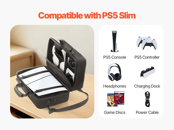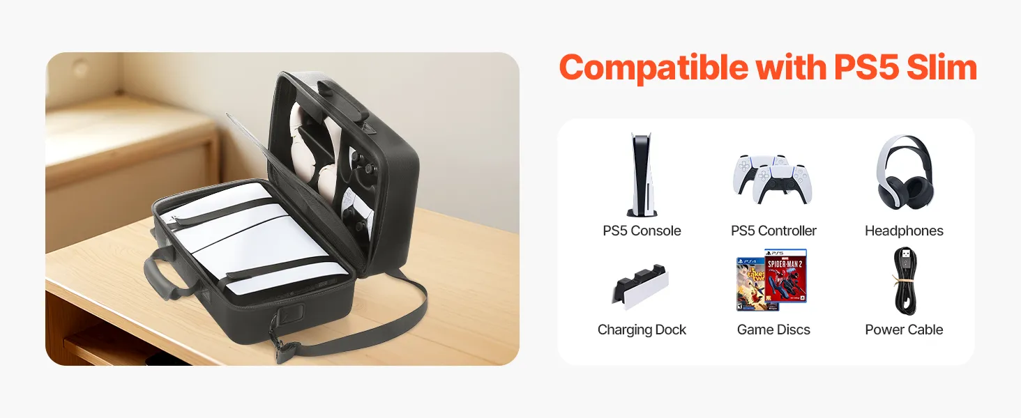 Sturdy & Shockproof EVA Material: Constructed with high-quality EVA material, the PS5 Slim carrying case features a hard-shell exterior, offering superior protection against drops, impacts, and scratches. Only compatible with the PS5 Slim 2023 version