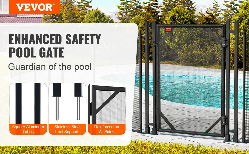 Sturdy Gate Frame: The exquisitely crafted pool fence gate features 1" thick square aluminum poles and 3.9" long stainless steel legs, providing superior corrosion resistance and durability for long-term stability and safety.