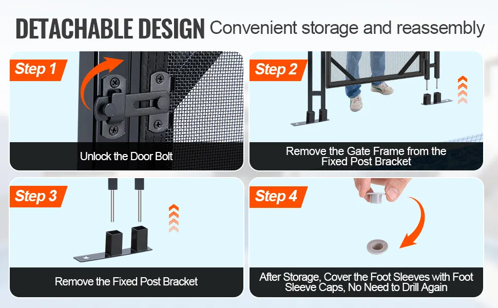 The removable pool safety gate allows even non-professionals to easily and quickly install, disassemble and storage. Suitable for cement and concrete pavement.