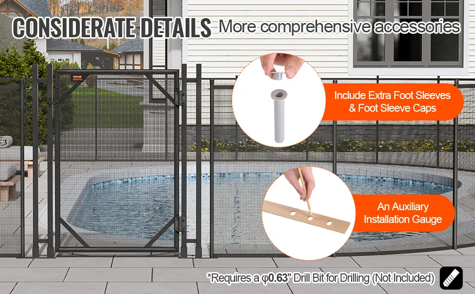 User-friendly Details: Equipped with an auxiliary installation drilling template and detailed installation instructions, we recommend using a 0.63" drill bit (not included) to ensure precise installation and perfect fitting of the pool safety gate.