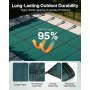 High-quality polypropylene forms the cover. This material is strong and built to last. It can withstand harsh winter conditions. The cover’s tight mesh surface prevents debris from entering. These things keep your pool clean and ready for use. The green mesh color complements your backyard well. You get a neat, organized look. Also, stainless steel tension springs are included. They enhance the cover's strength and durability. Brass ground bolts make it stay in place no matter the weather. The VEVOR pool safety cover is crucial for pool owners and those seeking pool protection.