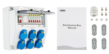 Box Contents: 5 x Schuko-Sockets 230 V, 16 A, Blue Sockets ABL IP54; 1 x Adapter Socket; 1 x FI Fuse 40A-30mA; 6 x 1-Pin LS C16A Circuit Breaker. Rated Working Voltage: AC 230 / 400V; Single Circuit Output Voltage: 200-250V, 380-480V; Rated Insulation Voltage: AC 400V; Pin Number Of Output Socket: 3-Pin / 5-Pin.