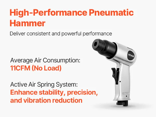 • Premium Material: Built with a powder-coated aluminum alloy housing and active air spring system, this air hammer with 4 chisels offers enhanced stability, precision, and vibration reduction — while remaining shockproof, wear and corrosion resistant