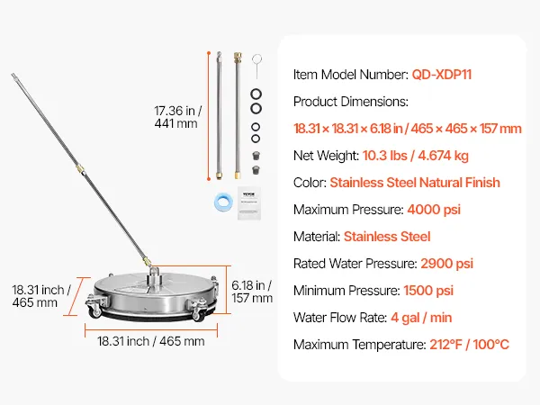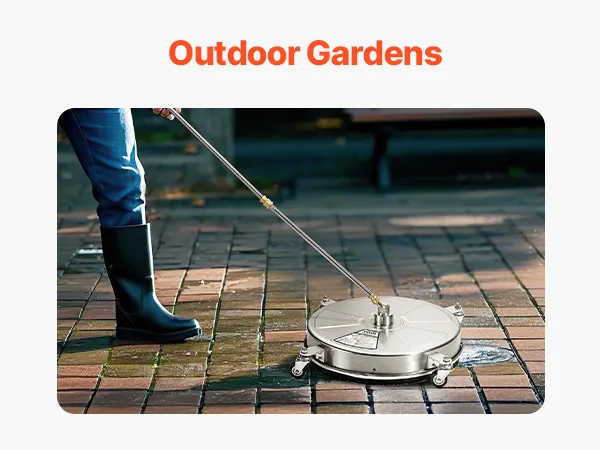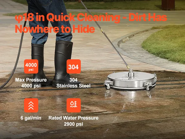 φ18 Inch Fast & Efficient Cleaning: With a high flow rate of 4 gal/min, this φ18-inch pressure washer surface cleaner ensures uniform coverage, leaving no spot behind. Whether it's a big task or regular cleaning, it makes the job easy. Enjoy efficient cleaning while saving time and effort.