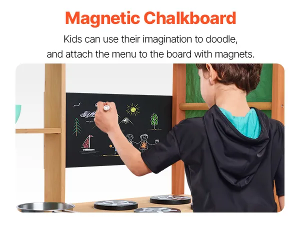Realistic Kitchen Play Design: Let your little one imitate cooking with dirt just like a real chef! Young chefs can write and draw menus on the magnetic chalkboard, use the removable sink and simulated faucet to wash their "dishes," and turn the knobs on the simulated stove to begin cooking. The endless toddler kitchen play scenarios will instantly spark your child's culinary imagination