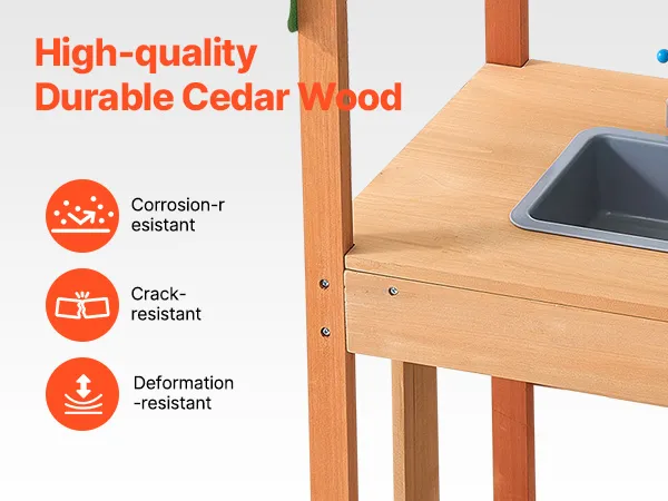 Waterproof Surface, Perfect for Outdoor Use: The wood outdoor kitchen is made from high-quality cedar wood for a sturdy structure. Its surface is treated with outdoor-grade paint to make it waterproof and corrosion-resistant. This design ensures it can withstand harsh weather conditions and extreme environments, making it ideal for use in outdoor gardens, backyards, or lawns. It easily handles rain and intense sunlight, ensuring durability and extending its lifespan