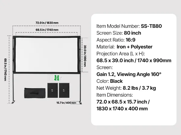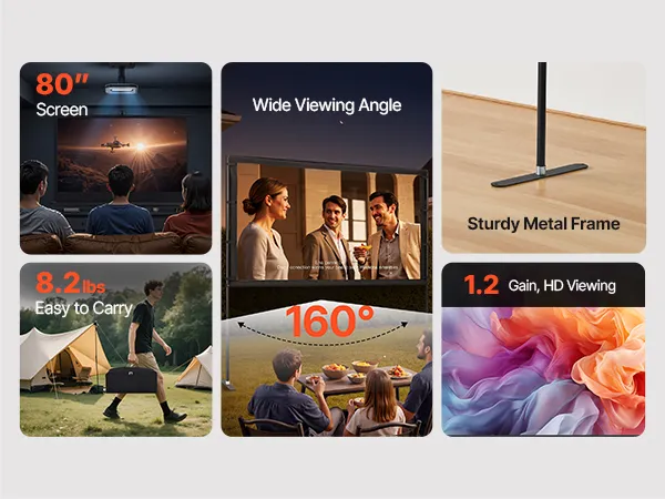 Lightweight & Portable: This outdoor projector screen’s moderate size and portable design allow easy vehicle storage. Ideal for diverse indoor/outdoor activities including movie nights, travel, camping, and home theater use