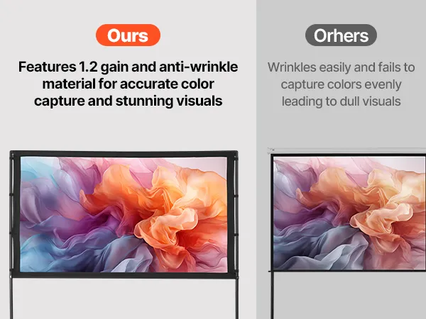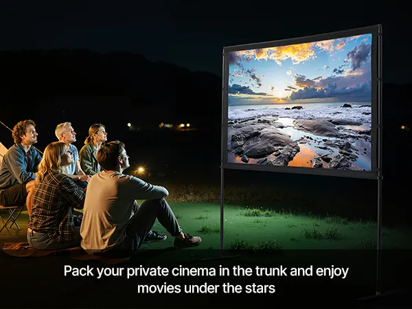 Foldable Projection Screen: Our projector screen is designed for outdoor cinematic experiences, offering an expansive viewing area. Its portable foldable structure enables space-saving storage and transport for instant viewing enjoyment anywhere
