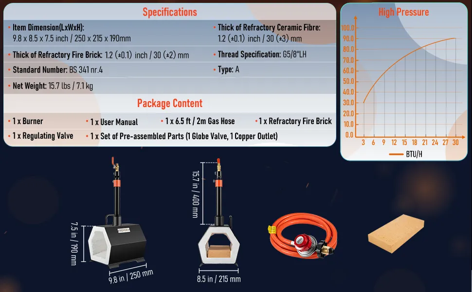 A forge burner with a beautiful orange color gives a more attractive outlook. With a better air inlet, this gas forge has more oxygen to enhance its burning capabilities. The superior structure provides a better effect and durability. It also is safe to use the product for a long time.